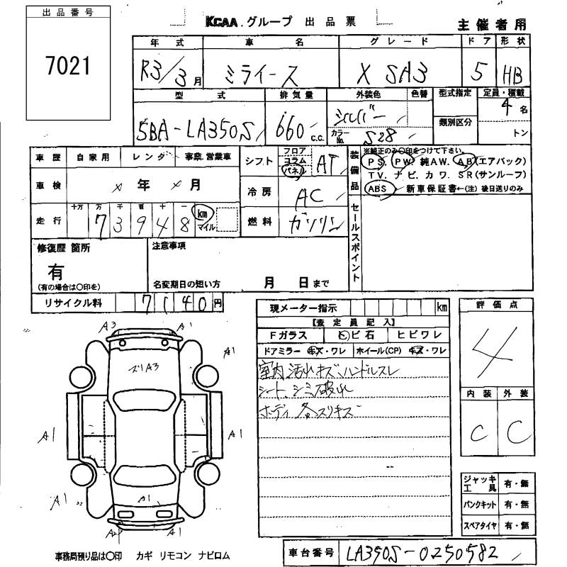 Статус не продан Лот 7021 Аукцион KCAA Fukuoka Дата аукциона 12.03.2026