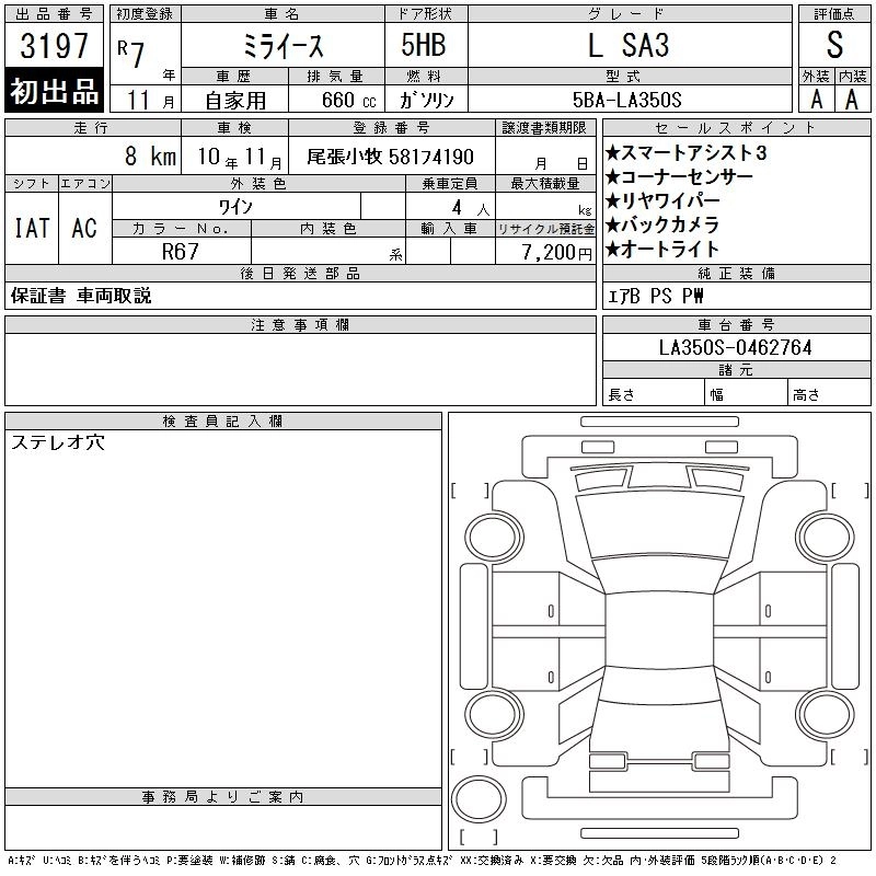 Статус выставлен на аукцион Лот 3197 Аукцион CAA Chubu Дата аукциона 11.03.2026