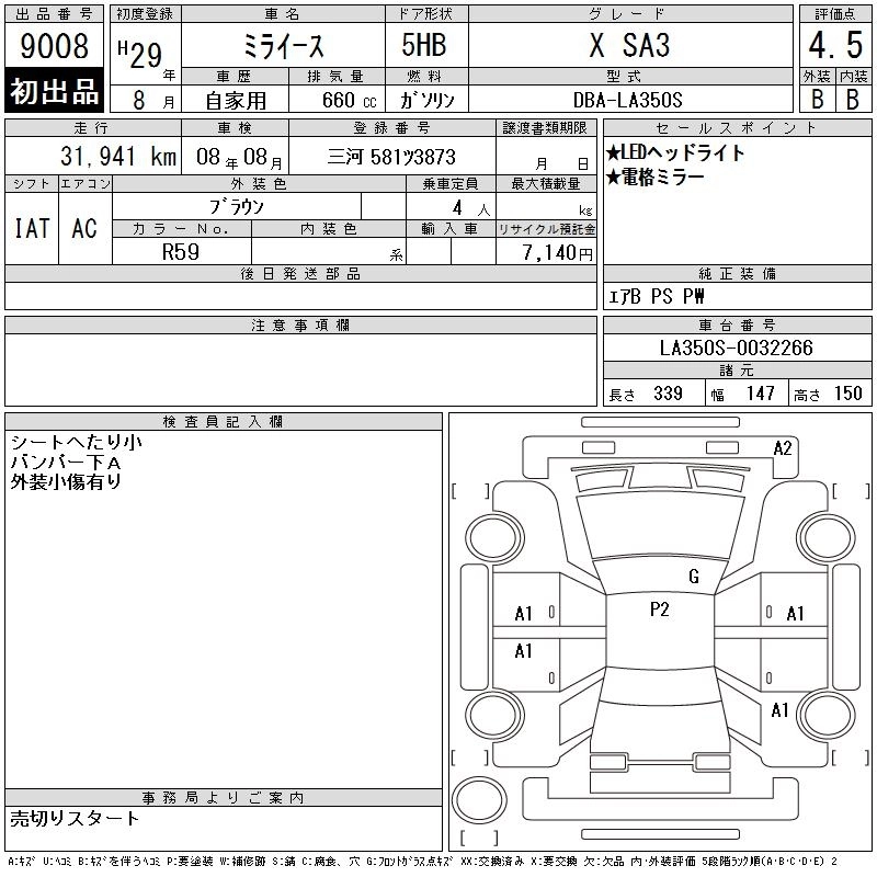 Статус выставлен на аукцион Лот 9008 Аукцион CAA Chubu Дата аукциона 11.03.2026