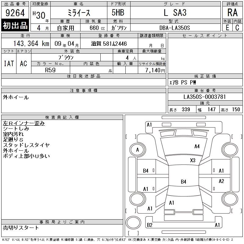 Статус выставлен на аукцион Лот 9264 Аукцион CAA Chubu Дата аукциона 11.03.2026