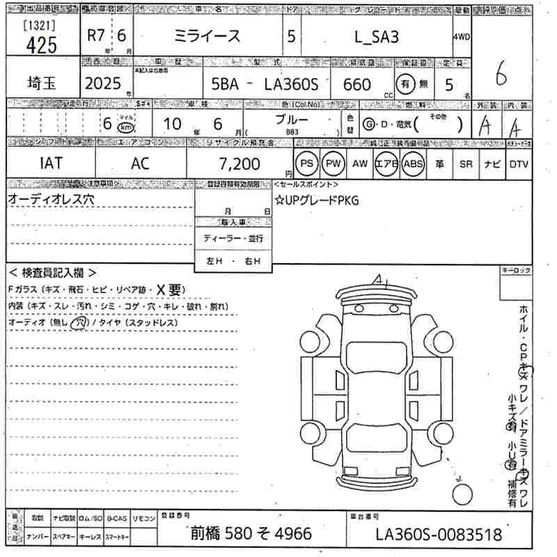 Статус выставлен на аукцион Лот 425 Аукцион MIRIVE Saitama Дата аукциона 11.03.2026