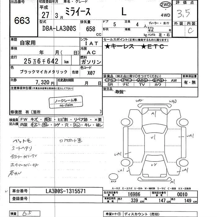 DAIHATSU MIRA E:S 2015 г., лот № 663