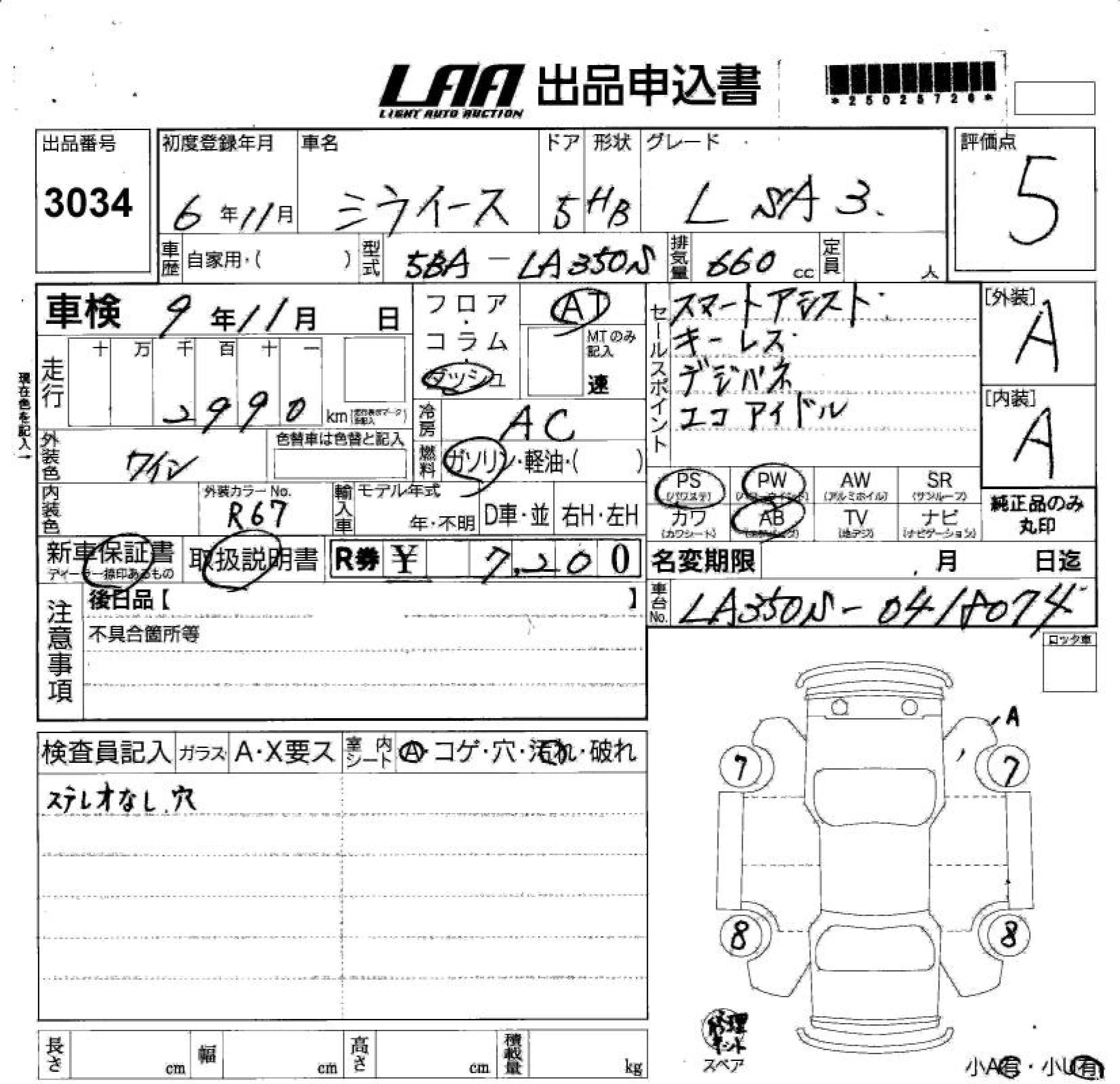 Статус выставлен на аукцион Лот 3034 Аукцион LAA Shikoku Дата аукциона 11.03.2026