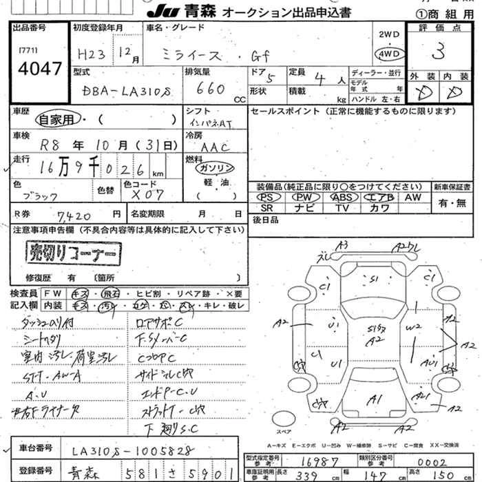 Статус выставлен на аукцион Лот 4047 Аукцион JU Aomori Дата аукциона 11.03.2026