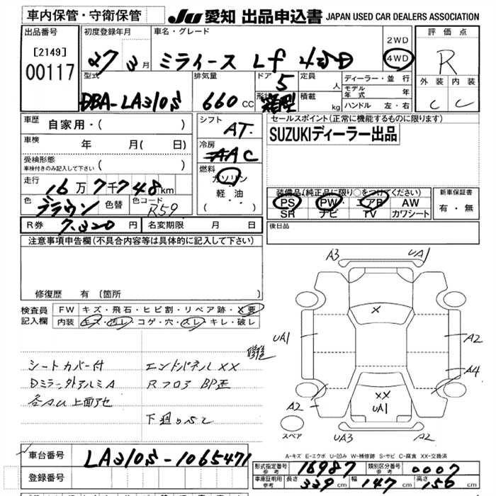 Статус выставлен на аукцион Лот 117 Аукцион JU Aichi Дата аукциона 12.03.2026