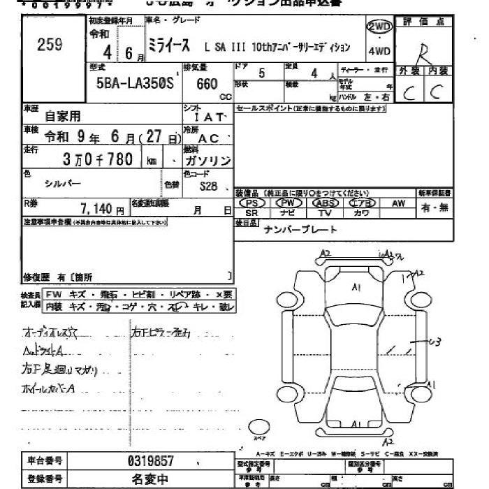 Статус выставлен на аукцион Лот 259 Аукцион JU Hiroshima Дата аукциона 12.03.2026