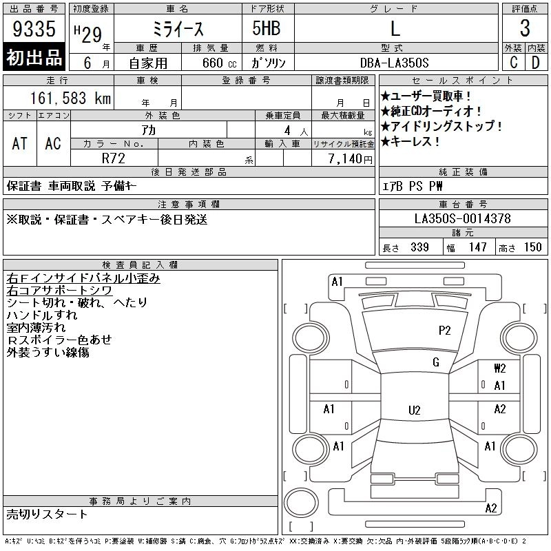 Статус выставлен на аукцион Лот 9335 Аукцион CAA Chubu Дата аукциона 11.03.2026