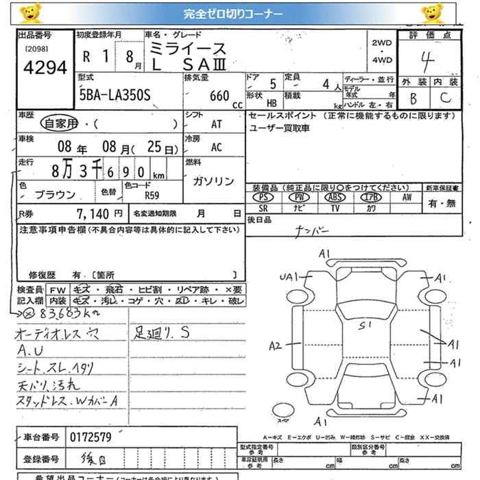 Стартовая цена авто на аукционе 0 ¥