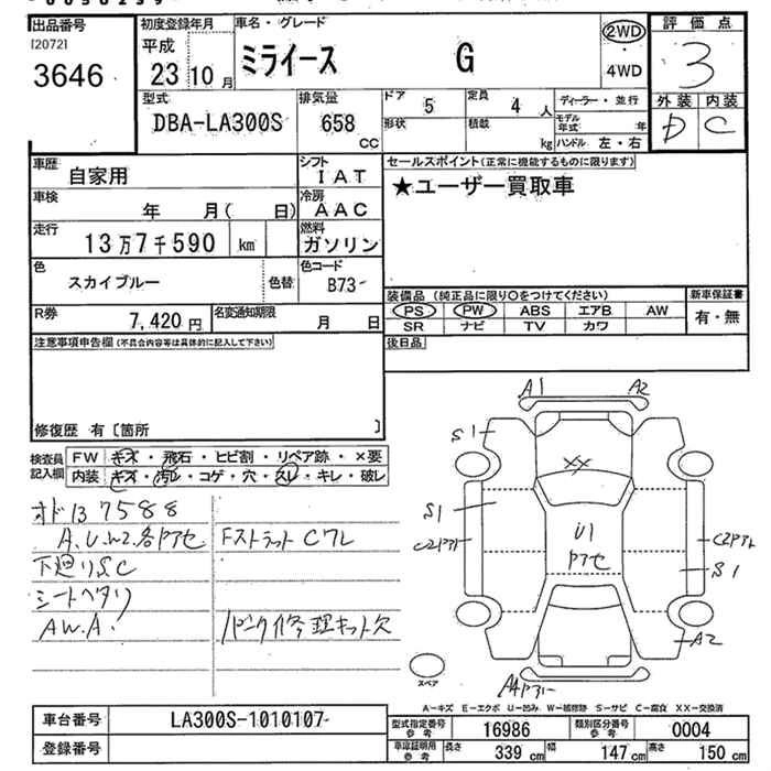 Статус выставлен на аукцион Лот 3646 Аукцион JU Niigata Дата аукциона 13.03.2026