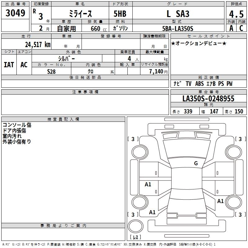 Статус выставлен на аукцион Лот 3049 Аукцион TAA Chubu Дата аукциона 12.03.2026