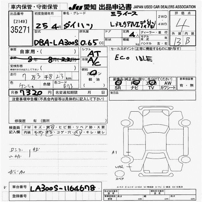 Год выпуска2013 Пробег 74 000 км КузовLA300S КомплектацияL MEMORIAL EDITION