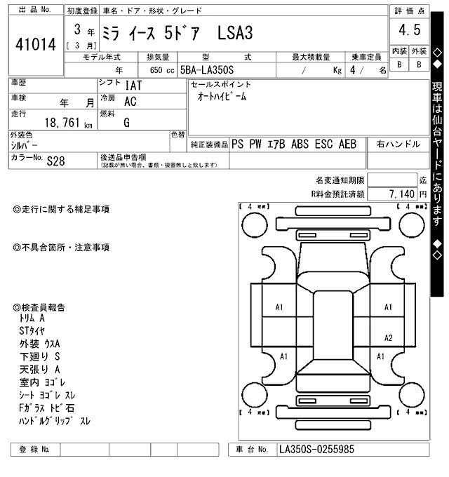 Статус продан Лот 41014 Аукцион ARAI Bayside Дата аукциона 13.03.2026