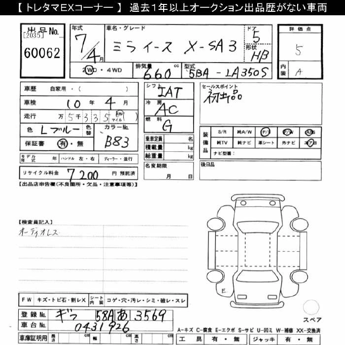 Статус выставлен на аукцион Лот 60062 Аукцион JU Gifu Дата аукциона 14.03.2026