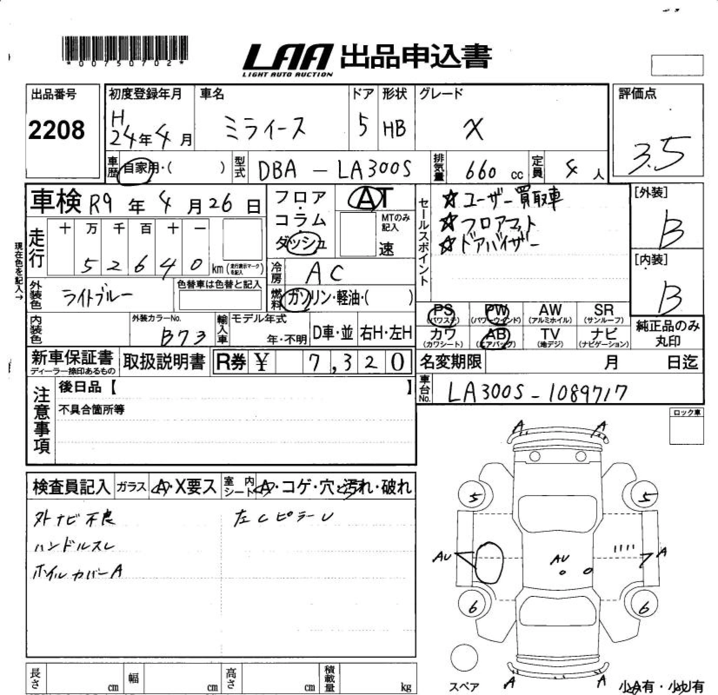 DAIHATSU MIRA E:S 2012 г., лот № 2208