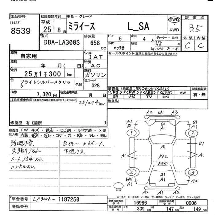 Год выпуска2013 Пробег 251 000 км КузовDBA-LA300S КомплектацияL_SA 2WD
