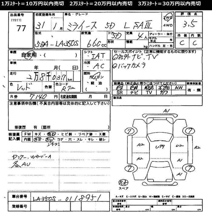 Стартовая цена авто на аукционе 30 000 ¥