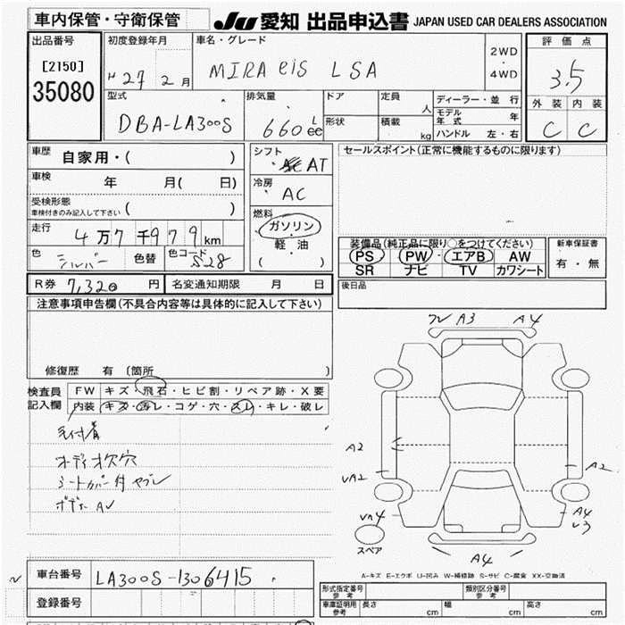 DAIHATSU MIRA E:S 2015 г., лот № 35080