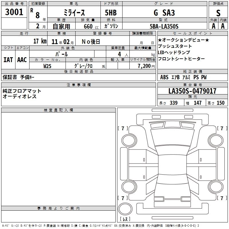 Статус выставлен на аукцион Лот 3001 Аукцион TAA Chubu Дата аукциона 19.03.2026