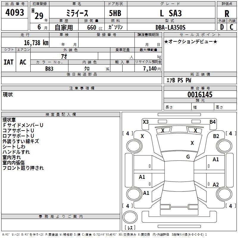 DAIHATSU MIRA E:S 2017 г., лот № 4093