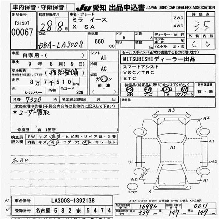 Статус выставлен на аукцион Лот 67 Аукцион JU Aichi Дата аукциона 19.03.2026