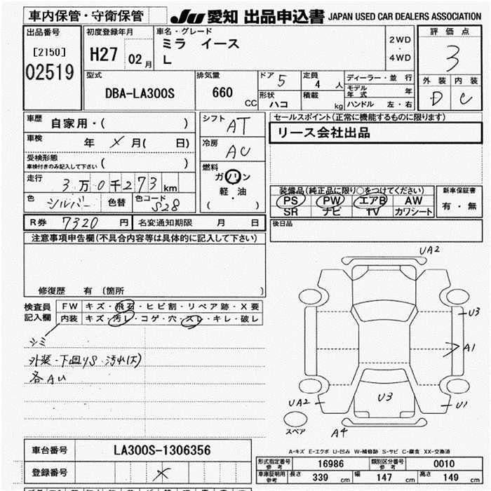 DAIHATSU MIRA E:S 2015 г., лот № 2519