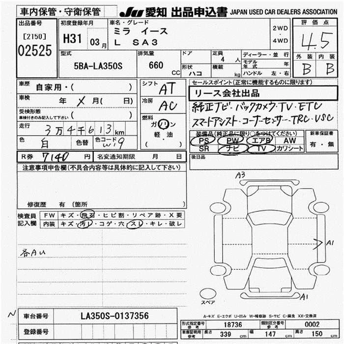 Статус выставлен на аукцион Лот 2525 Аукцион JU Aichi Дата аукциона 19.03.2026