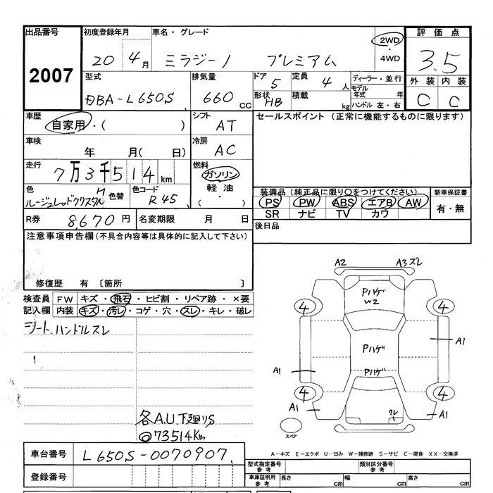 Статус выставлен на аукцион Лот 2007 Аукцион JU Shizuoka Дата аукциона 21.10.2025