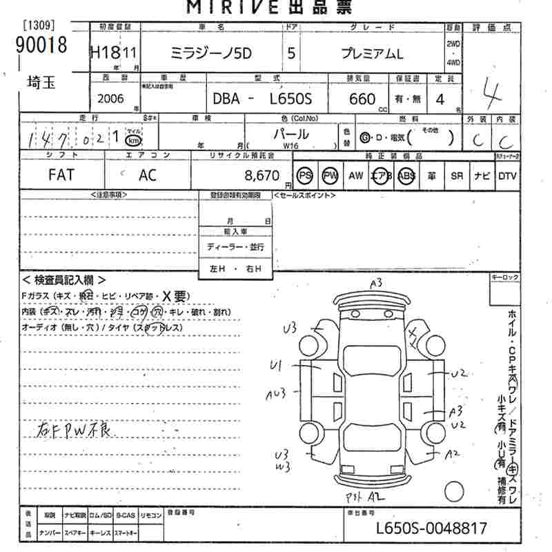 Статус выставлен на аукцион Лот 90018 Аукцион MIRIVE Saitama Дата аукциона 10.12.2025