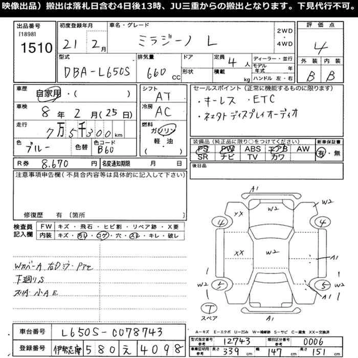 Статус выставлен на аукцион Лот 1510 Аукцион JU Mie Дата аукциона 09.12.2025