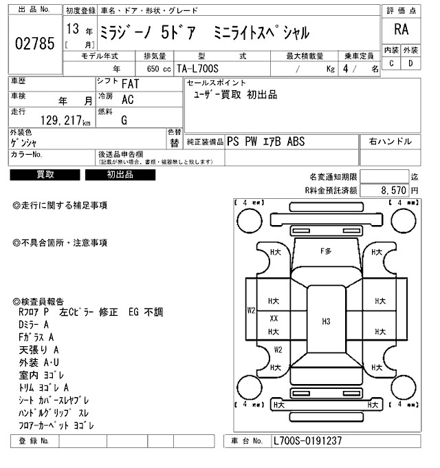 Год выпуска2001 Пробег 129 000 км КузовL700S Комплектация MINILITE SPECIAL