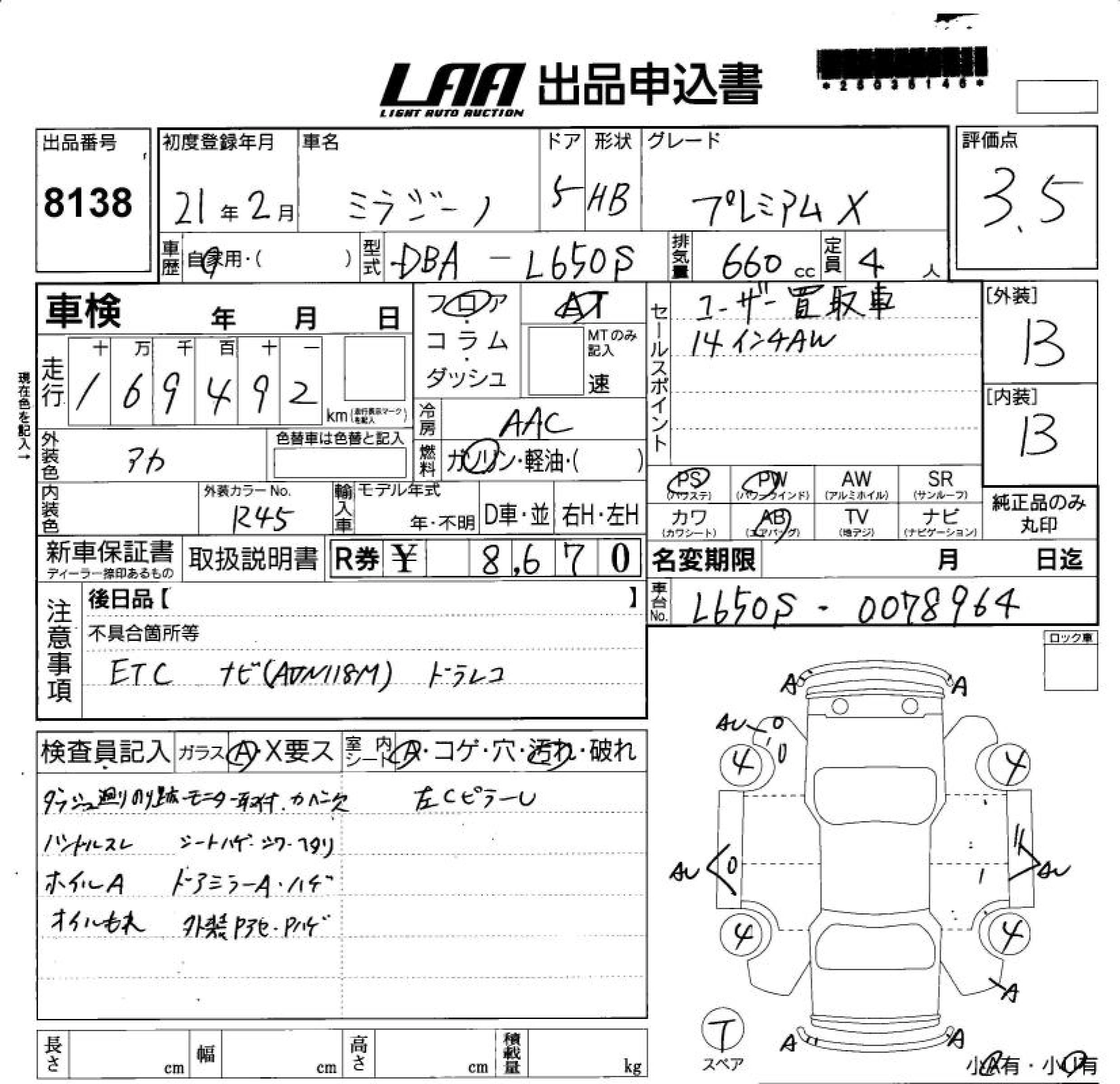 Статус выставлен на аукцион Лот 8138 Аукцион LAA Shikoku Дата аукциона 11.03.2026