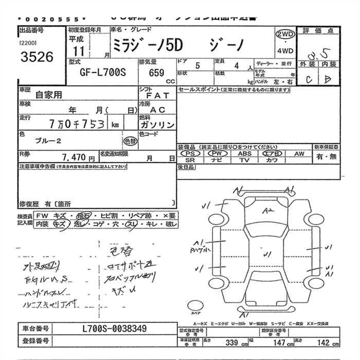 Год выпуска1999 Пробег 71 000 км КузовL700S Комплектация GINO