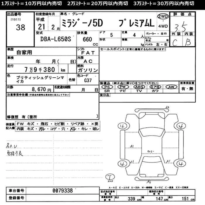 Стартовая цена авто на аукционе 30 000 ¥