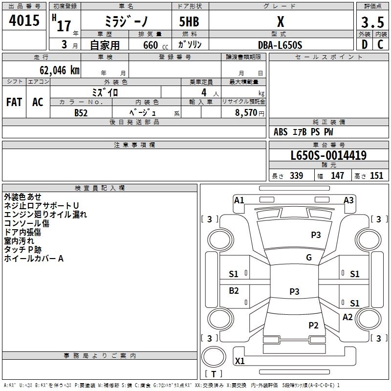 Статус выставлен на аукцион Лот 4015 Аукцион TAA Chubu Дата аукциона 19.03.2026
