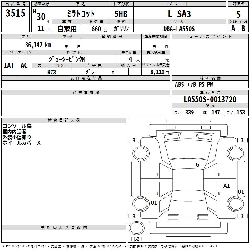 Статус выставлен на аукцион Лот 3515 Аукцион TAA Chubu Дата аукциона 11.12.2025