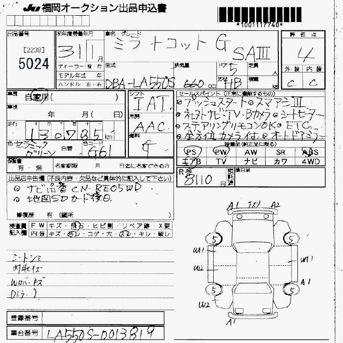 Статус выставлен на аукцион Лот 5024 Аукцион JU Fukuoka Дата аукциона 13.03.2026