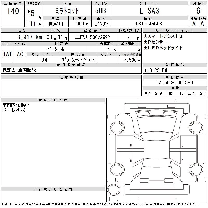 DAIHATSU MIRA TOCOT 2023 г., лот № 140