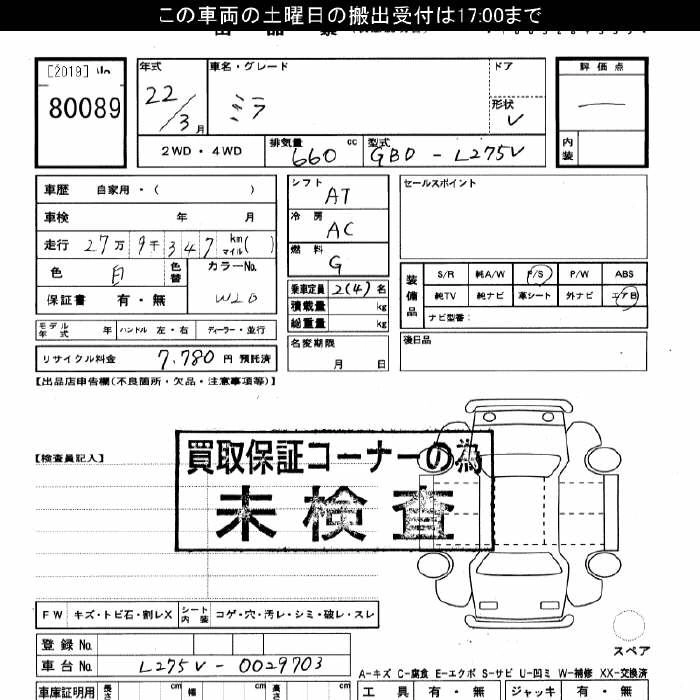 DAIHATSU MIRA 2010 г., лот № 80089