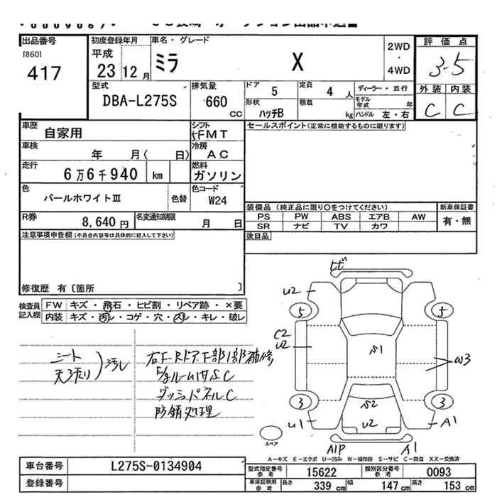 DAIHATSU MIRA 2011 г., лот № 417