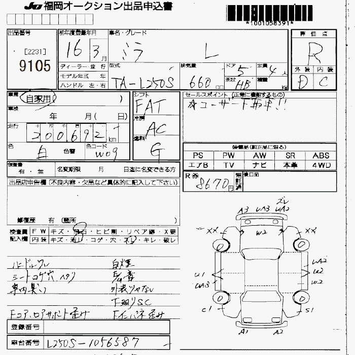 Статус не продан Лот 9105 Аукцион JU Fukuoka Дата аукциона 23.01.2026