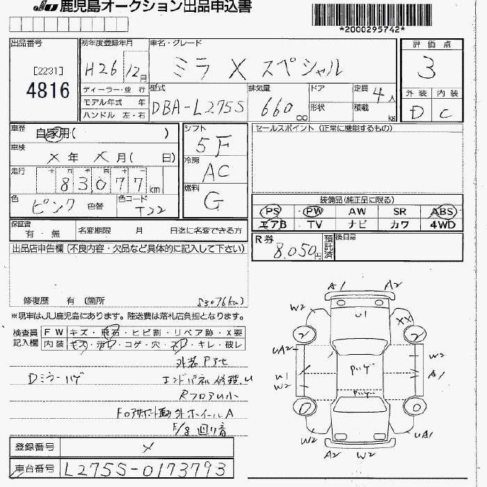 Статус не продан Лот 4816 Аукцион JU Fukuoka Дата аукциона 23.01.2026