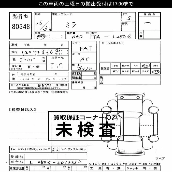 Статус выставлен на аукцион Лот 80348 Аукцион JU Gifu Дата аукциона 24.01.2026