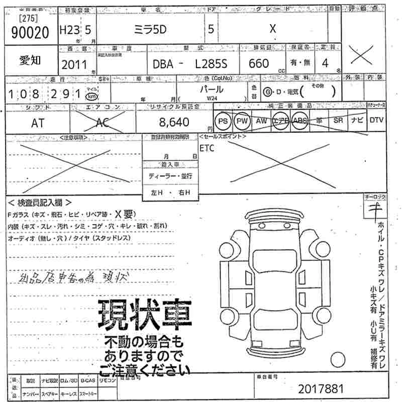 Статус не продан Лот 90020 Аукцион MIRIVE Aichi Дата аукциона 23.01.2026