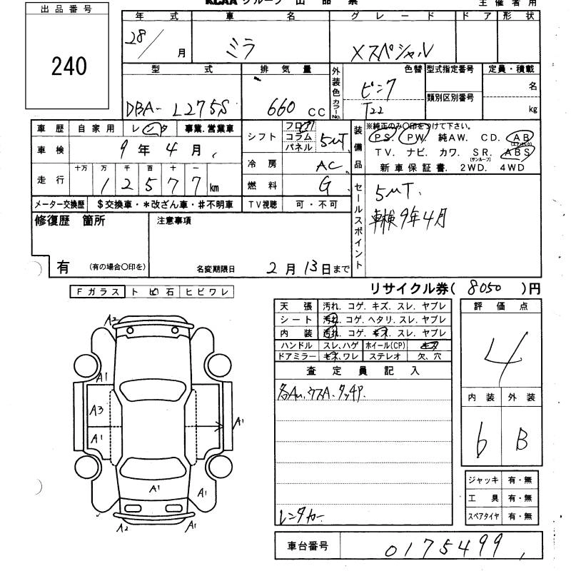DAIHATSU MIRA 2016 г., лот № 240