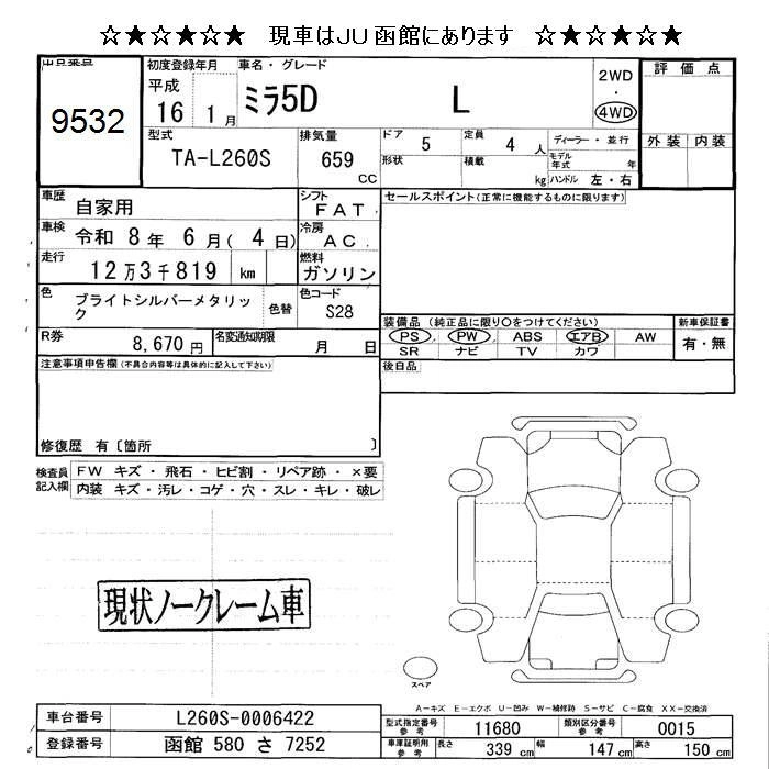 Статус не продан Лот 9532 Аукцион JU Hokkaido Дата аукциона 23.01.2026