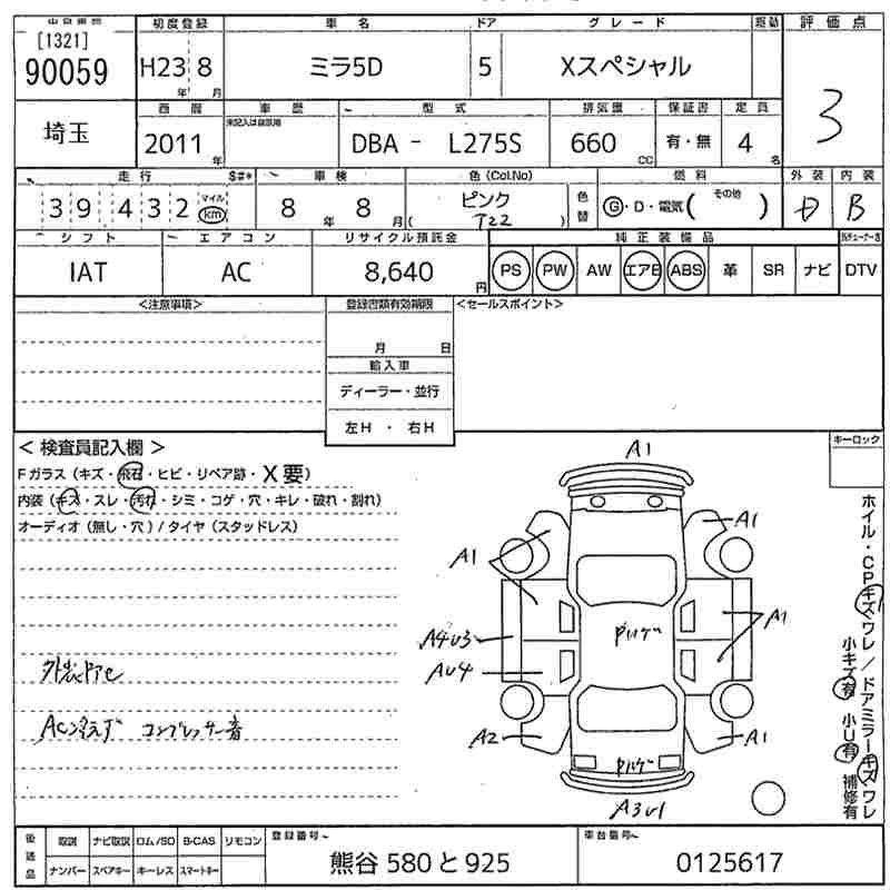 Статус выставлен на аукцион Лот 90059 Аукцион MIRIVE Saitama Дата аукциона 11.03.2026