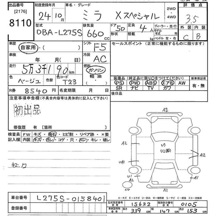 Статус продан Лот 8110 Аукцион JU Tokyo Дата аукциона 09.03.2026