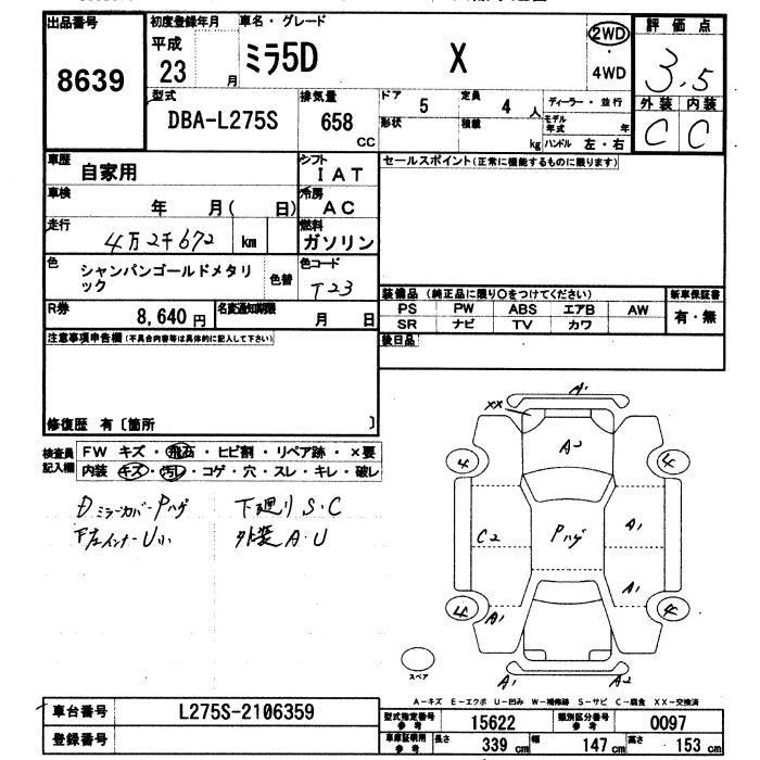 DAIHATSU MIRA 2011 г., лот № 8639