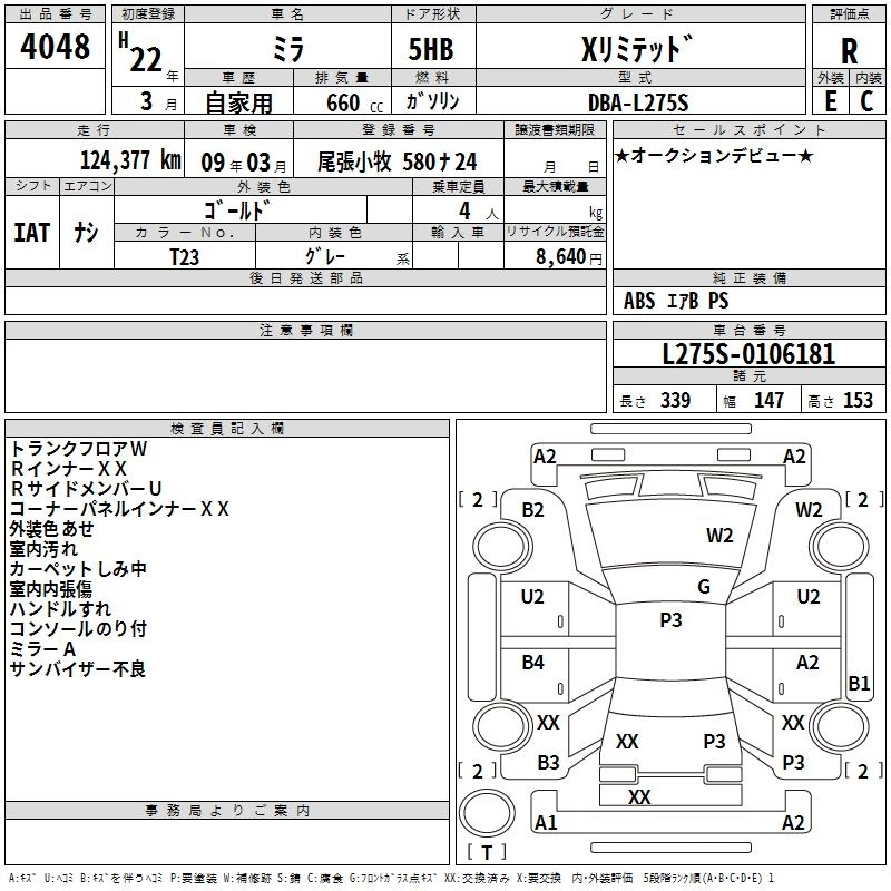 Статус выставлен на аукцион Лот 4048 Аукцион TAA Chubu Дата аукциона 12.03.2026