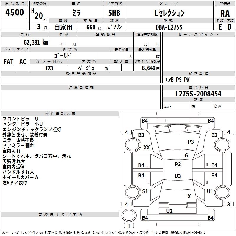 Статус выставлен на аукцион Лот 4500 Аукцион TAA Chubu Дата аукциона 12.03.2026